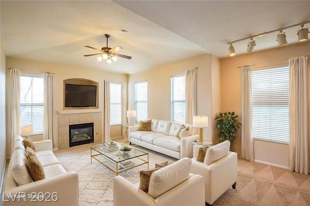Beautiful Newly Painted 3 Bedroom Condo in Chateau Nouveau! in a Gated Community Near The 215. Don't' miss this hard to find 3-bedroom 2-bath Corner unit condo located on the second floor of the highly desirable Chateau Nouveau gated community. Offering nearly 1,500 sf of living space. This corner units are designed to maximize natural light, creating a brighter and more inviting space with view of the mountains. Enjoy the cozy fireplace in the spacious living room, an open kitchen with breakfast par, pantry and access to a private balcony- perfect for morning tea or relaxation. The primary suite features a generous walk-in closet, separate tub and shower. Community amenities include a sparkling pool, relaxing sap, clubhouse and fitness center. Ideally located near shopping, dining and with easy access to I-215. This is a must see