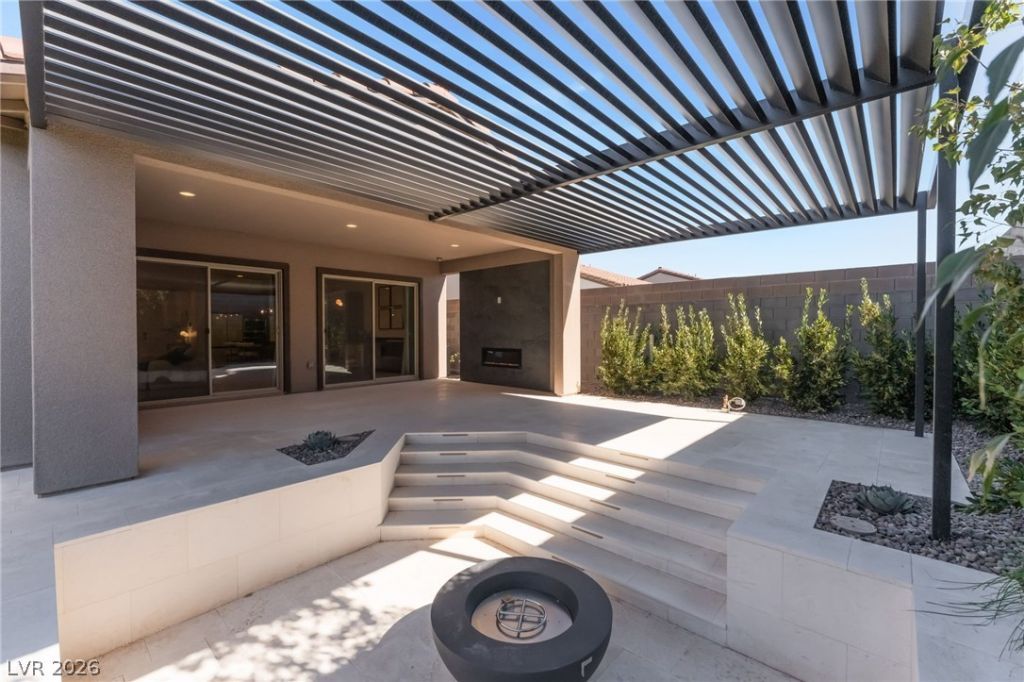 2024 built single story home with 12 ft ceilings. As you walk through the front entrance you are greeted by the open floor plan and direct sight line to the custom backyard. Premium upgraded flooring including carpet, tile, and hardwood. The chefs kitchen features premium extended kitchen island and cabinets. Built in gas oven. Built in microwave and gas cooktop. The living room has built in ceiling speakers. Custom blinds and curtains throughout the home let in plenty of natural light. Primary bedroom retreat with bath featuring curb less shower with rain shower head. Custom California Closet organizer system in primary closet. Upgraded ceiling lights in bedrooms. The exterior of the home has an extended driveway, and the block walls have 2 added rows for privacy. Backyard is truly spectacular w/ 1200Sqft. of top tier Travertine, covered patio, sunken gas fire pit, designer tiled entertainment wall with fireplace. Raised planter w/ river rock premium cactus and plants. Fruit trees.