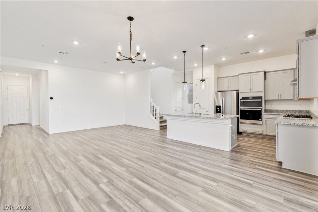 Welcome to this stunning 2024-built home nestled in one of Las Vegas's newest gated communities! This spacious 4-bedroom, 2-bathroom residence features a thoughtfully designed open floor plan with a convenient main-level bedroom and full bath. Enjoy breathtaking mountain views from your private balcony, and take advantage of the attached 2-car garage complete with built-in shelving. Energy-conscious renters will love the tankless water heater, and the fully equipped kitchen comes with all appliances included. Step outside to your covered patio and low-maintenance backyard ? the perfect setting for weekend gatherings or a quiet evening outdoors. Included in your rent: HOA fees, Republic Services, and sewer. Tenant responsible for electric, gas, water, and cable/internet. Schedule your private showing today!