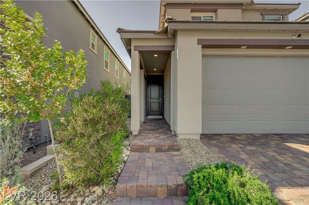 Step into this private oasis with a sparkling pool and peaceful vibe in the heart of Summerlin in the desirable Bristle Vale neighborhood! This spacious floor plan with designer finishes throughout, features a gourmet kitchen with built in electric oven, double oven, and gas cooktop. Primary suite features balcony with stunning city and mountain views. Tons of upgrades including cozy fireplace, paid off solar, tankless water heater and so much more. Truly a must see and shows true pride of ownership. Bedroom and full bathroom downstairs, perfect for guests. 5 minutes from Red Rock and downtown Summerlin and 15 minutes to the famous Las Vegas Strip!