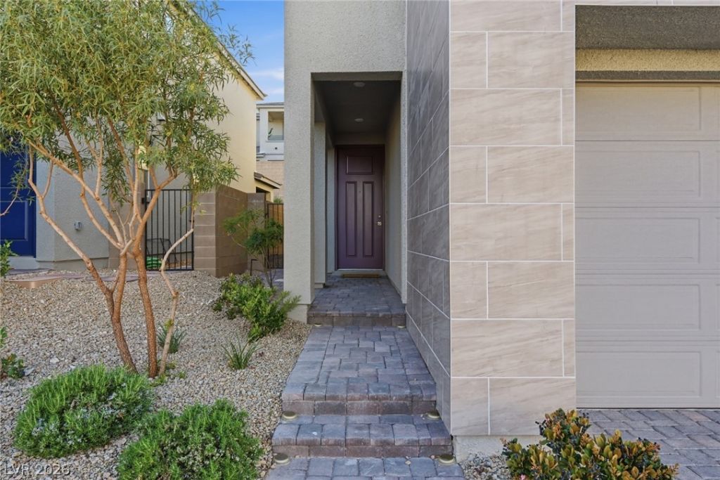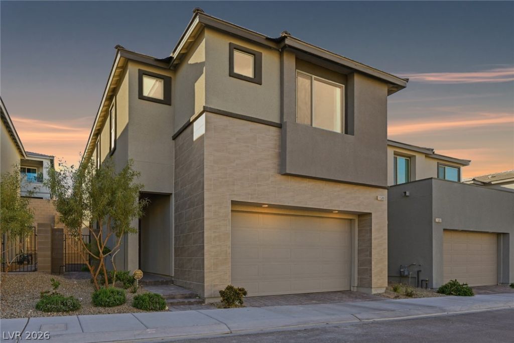 Nearly new KB Home located in a the gated community of Nighthawk in the desirable Summerlin West area. This residence offers 5 bedrooms and 3 bathrooms, including a convenient bedroom on the main level. The open-concept layout features a spacious great room filled with natural light that flows seamlessly into the dining area and kitchen. The kitchen showcases a large island with seating, granite countertops, stainless appliances, and abundant cabinetry. Upstairs includes additional living space and well-sized bedrooms, with walk-in closets in three bedrooms and ample storage throughout. The backyard features a finished paver patio creating a comfortable outdoor entertaining space. Additional highlights include luxury plank flooring, recessed lighting, tankless water heater, EV charging outlet in the garage, and a 2-car garage. Located near parks, trails, and shopping with proximity to the new Grand Park district, bringing future retail, dining, and recreation to the area.