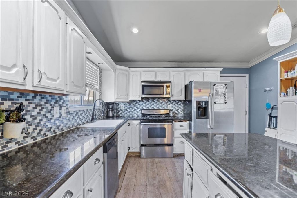 Single-story home offers four generously sized bedrooms & two beautiful bathrooms with a pool and no HOA. Located in a peaceful neighborhood, it perfectly combines comfort and convenience. The modern style open-concept layout effortlessly connects the living room, dining area, and kitchen, creating an ideal space for everyday living and entertaining. The kitchen features stainless steel appliances and a large island for lots of counter space. The bathrooms are remodeled with beautiful finishes. Step outside to a large private backyard oasis featuring a sparkling pool, perfect for a year-round enjoyment. With ample yard space for gathering, gardening, or simply relaxing, this home invites you to enjoy the beauty of your surroundings.