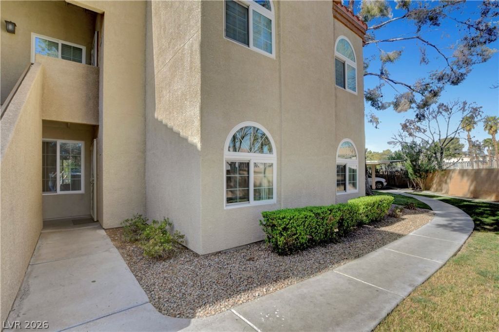 Beautifully upgraded ground-level condo featuring 2 spacious bedrooms and 2 full bathrooms, ideally positioned in a central Las Vegas location. Just minutes from the iconic Strip, Harry Reid International Airport, major freeways, shopping, and dining. Enjoy resort-style living with access to two community pools, or take advantage of nearby walking trails and scenic outdoor spaces?perfect for unwinding or staying active. Step inside to an open-concept layout highlighted by a generously sized family room and a bright dining area with ceiling fan. The gourmet kitchen is designed to impress, showcasing level 3 granite countertops, flat-panel maple cabinetry, and all appliances included?perfectly flowing into a private patio space ideal for relaxing or entertaining. The oversized primary suite offers mirrored closet doors and a spa-inspired bathroom complete with a Roman-style soaking tub.