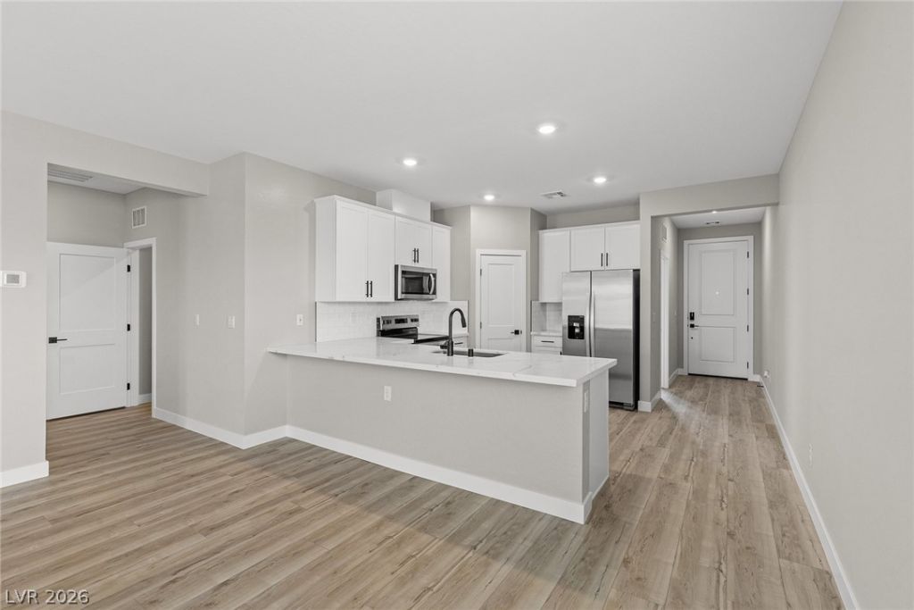 Boasting with charm, this stunning new-construction home is now available at Cheyenne Valle where homeowners can enjoy a beautiful community with charming amenities. This one-story, four-bedroom, two-bathroom home provides all the space with a desirable layout, including designer finishes all throughout. The large living area offers plenty of room for family gatherings, while the kitchen provides ample counter space and upgraded, modern appliances, making cooking and meal prep a breeze. The dining room flows directly into both the living area and kitchen, creating a natural gathering spot for meals and socializing. Through the living room, you will find yourself at a charming, covered patio, perfect for enjoying the outdoors year-round. With high-end finishes throughout the home, the Ruby floor plan is the perfect space for you.