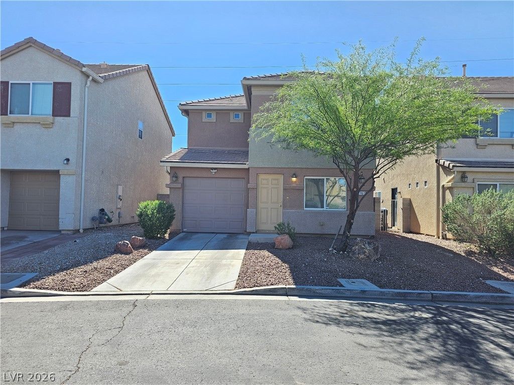 Come see this fantastic two story home with three bedrooms, two and a half baths and a one car garage! Hard surface flooring throughout the downstairs. Carpet upstairs. Kitchen has granite counters with good counter space, white appliances and overlooks dining area on one side and the living room on the other. Primary bedroom has a walk in closet. Washer and dryer upstairs. Desert landscaping in the front and back. Tenant to verify all information including schools.