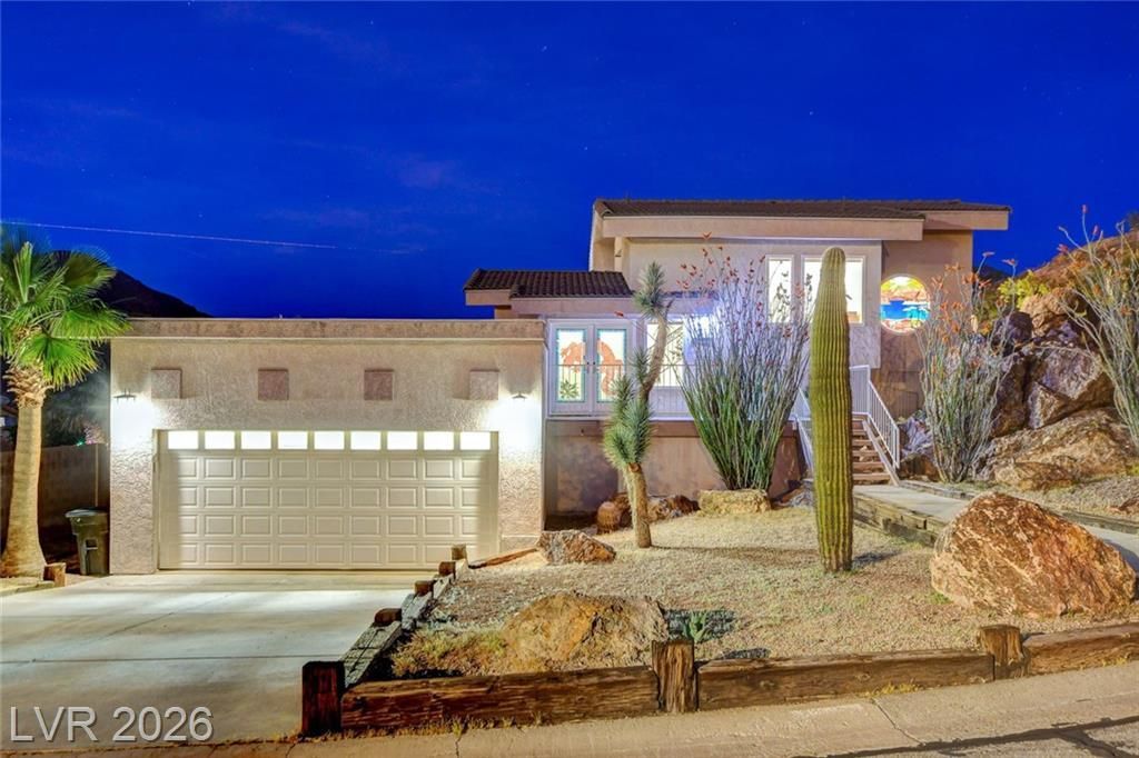 Discover comfort and style in this exquisite 3BR, 2BA home, spanning over 2,400 sqft, located in a tranquil cul-de-sac of Lake Side Boulder City, close to Hemenway Park. No HOA!!!! Breathtaking views are showcased from the wraparound deck, perfect for outdoor relaxation. Dive into luxury with an inground pool, ideal for warm sunny days. The home features a custom remodeled kitchen, complemented by new tile flooring and plush new carpet. Experience modern living with remodeled bathrooms, stylish upgraded doors, and bright newer windows. A haven near nature, where roaming Big Horn Sheep can often be spotted, offering a unique touch to this stunning property. This is a Must See!