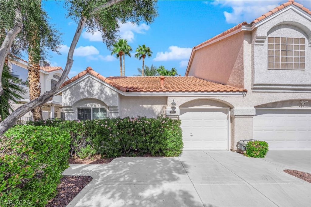 Highly remodeled and with Furniture 2 bed/2 bath/ 1 car garage one story Town house located in well groomed, Quaint gated community with pool & Spa! Just minutes from Allegiant Stadium, T-Mobile Arena, and The Las Vegas Strip! All Model Furniture, TVs are included! Bright, Open and Airy with Soaring ceilings with professional design decorations. A Dream Kitchen with Custom Cabinets! Quartz countertop throughout, High-Quality Man-Made Title Flooring. Primary Bathroom full wall backsplash, walk in closed with build ins. Beautifully backyard with covered Patio and BBQ Grill.