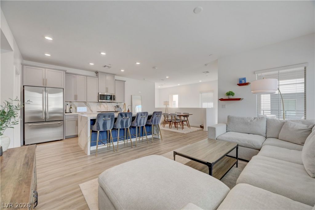 Elevated living in the highly sought-after Summerlin West community. This modern 2-bedroom, 2.5-bath townhouse with a 2-car garage offers a seamless blend of style, comfort, and breathtaking surroundings. Open, light-filled layout designed for both everyday living and entertaining. Expansive windows bring in natural light, including luxury vinyl plank flooring. This better than builder upgraded kitchen features a striking waterfall island, luxury GE Monogram appliances, quartz countertops, and walk-in pantry. Bedrooms are thoughtfully designed with privacy in mind, offering its own ensuite bathroom and walk-in closet. Unwind on your private balcony and take in sweeping views. Additional highlights include a tankless water heater, EV charger, and access to a gated community with a pool and playground. Ideally located just minutes from Downtown Summerlin, you'll enjoy convenient access to top-tier shopping, dining, parks and trails.