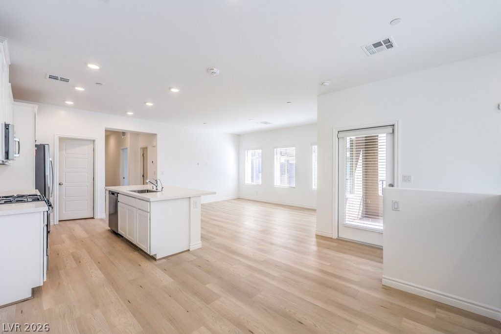 This contemporary residence offers unparalleled comfort and style. Step into sophistication with dual master suites, each featuring its own en suite bathroom for ultimate privacy and convenience. Adorned with sleek white cabinets and islands, the kitchen is a culinary dream, equipped with top-of-the-line stainless steel appliances that elevate your cooking experience. Relish in the indoor-outdoor lifestyle with a charming patio, perfect for al fresco dining or simply unwinding under the Nevada sky. Embrace the modern convenience of a tankless water heater, ensuring endless hot water on demand, while luxury vinyl flooring adds an elegant touch throughout the space. Located in a prime Las Vegas location, residents have easy access to vibrant entertainment, dining, and shopping destinations. Whether you're seeking a tranquil retreat or a lively urban experience, this rental offers the best of both worlds.