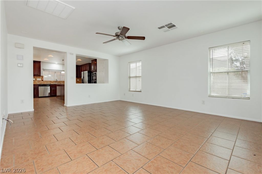 Located in the highly desirable Mountains Edge community in Southwest Las Vegas, this well-maintained corner lot home offers 3 bedrooms, 2.5 baths, and a functional open-concept layout. The kitchen features granite countertops, stainless steel appliances, and ample cabinet space, flowing seamlessly into the spacious living and dining areas, perfect for everyday living. Upstairs you'll find a versatile loft ideal for a home office, media room, or play area, along with generously sized bedrooms. The interior has been freshly painted and the home includes window coverings throughout, making it truly move-in ready. Enjoy the added privacy of a corner lot along with the convenience of being just minutes from parks, walking trails, shopping, dining, and easy freeway access. This home offers the perfect combination of comfort, location, and value in one of Southwest Las Vegas' most popular master-planned communities.