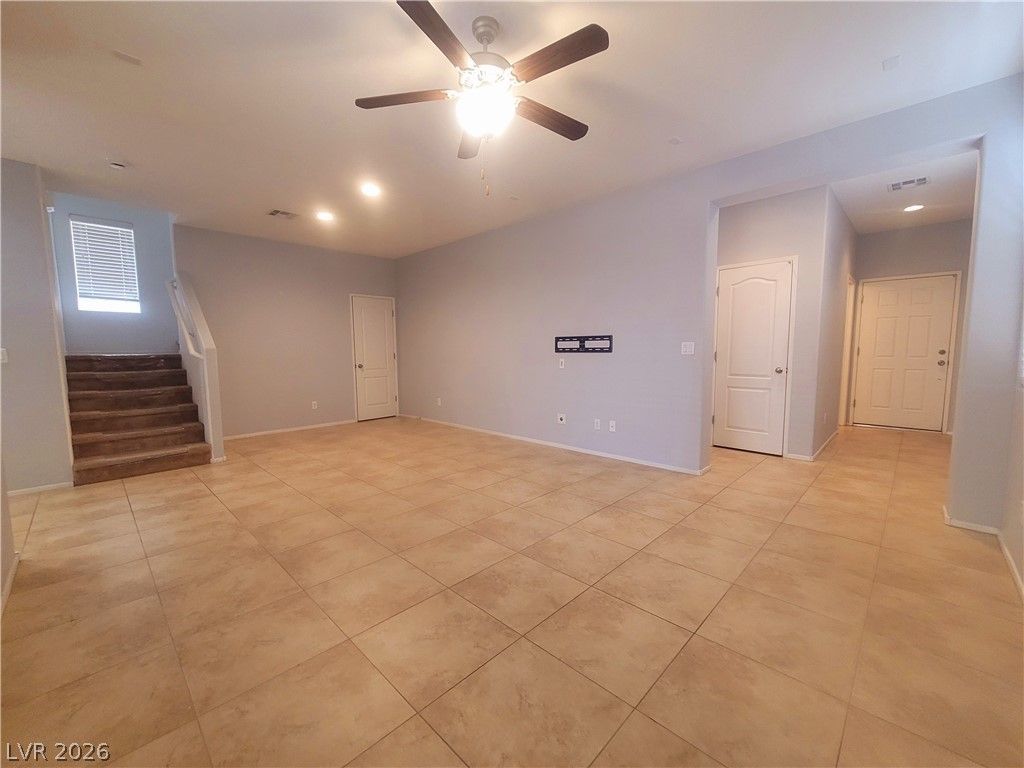 Beautiful, well-kept 4-bedroom home in Mountain Edge. Property features 20 X 20 Tiles throughout on the 1st floor. SS Appliances in the kitchen, granite countertops. Nice and clean. Ceiling fans in all bedrooms, the primary bathroom has a separate shower and a tub. Front-loaded washer and dryer in the laundry room. The backyard has a covered patio, and it's landscaped. 2-car garage. Great rental or a starter home. Community pool and playground