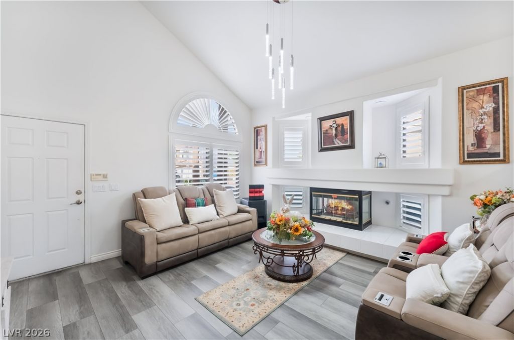 Wow OVER $100,000 in UPGRADES! LOCATION, LOCATION, LOCATION! Check out this beautiful 4-bed, 2.5-bath home located in a gated Centennial Hills community with low HOA cost. This inviting residence features vaulted ceilings and a cozy fireplace in the formal living and dining areas, along with a well-appointed kitchen offering an island, breakfast nook, and plenty of space for entertaining. The spacious primary suite includes a 3-way fireplace, large walk-in closet, and spa-inspired bathroom with double sinks, separate shower, and soaking tub. Step outside to an impressive backyard designed for outdoor living, complete with an expansive paved patio, covered areas for shade, built-in outdoor kitchen, and ample room for dining, lounging, and hosting gatherings. Surrounded by mature palms and a private setting, this space is perfect as-is or ready for your personal touches.