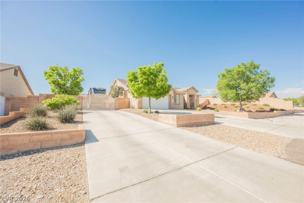 Remarkable 5-bedroom, 4-bathroom home with shutters throughout and ceiling fan lights in every bedroom. Vaulted ceilings in the main living areas?including the front living room, formal dining area, kitchen & family room?create a bright & open atmosphere. The kitchen features a large island & breakfast counter, granite countertops, abundant cabinetry & matching black appliances, flowing seamlessly into the family room with fireplace. Two secondary bedrooms share a Jack & Jill bath & the fifth bedroom has its own full bath. The primary suite includes a spacious walk-in closet & a beautifully appointed bathroom with double sinks, soaking tub & separate walk in shower. Enjoy a huge, low-maintenance backyard with desert landscaping & a sparkling pool with slide. Additional highlights include two attached garages, two detached garages that can be used as a workshop, gated RV parking with 50-amp hookup & dump station, two long driveways for extra parking & an alarm & camera system.
