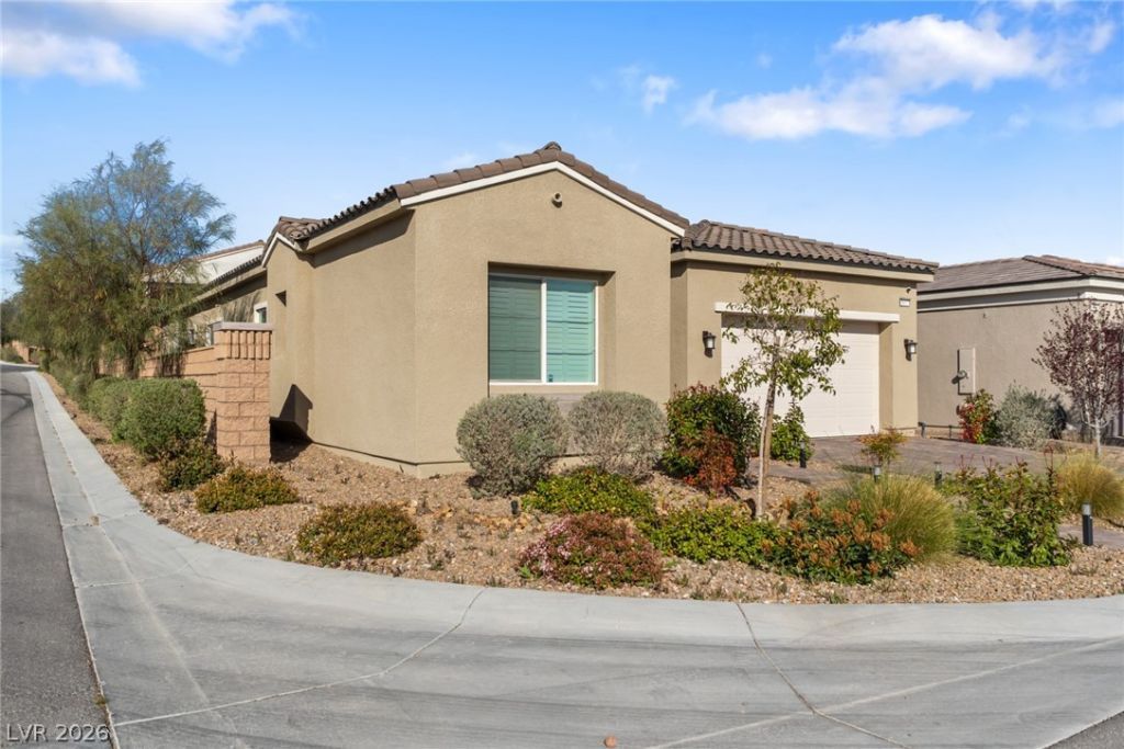 ***Model-Like Single Story Home STILL Like Brand New!*** Maybe an AITD? Step into this stunning 2,299 SF home in amazing Skye Canyon on a premium corner lot with 3 oversized bedrooms and 2.5 baths. A wide entryway leads to a bright open great room featuring high ceilings, recessed lighting, ceiling fans, and surround sound. Neutral tones and plantation shutters ($10K) add elegance, while designer barn doors ($15K value) on iron rollers open to the dining area. The kitchen offers fantastic counter seating for holidays and gatherings. A 3-panel slider extends your living space to a private backyard with 15 FT walls, covered patio, and $40K in breathtaking landscaping. Enjoy evening landscape lighting and the included projector & screen for unforgettable movie nights and game days! Skye Canyon delights with a pool, fitness center, coffee shop, pickleball & basketball courts, and more. Tour the home then explore the community! Ready for your new chapter? Come experience it today!
