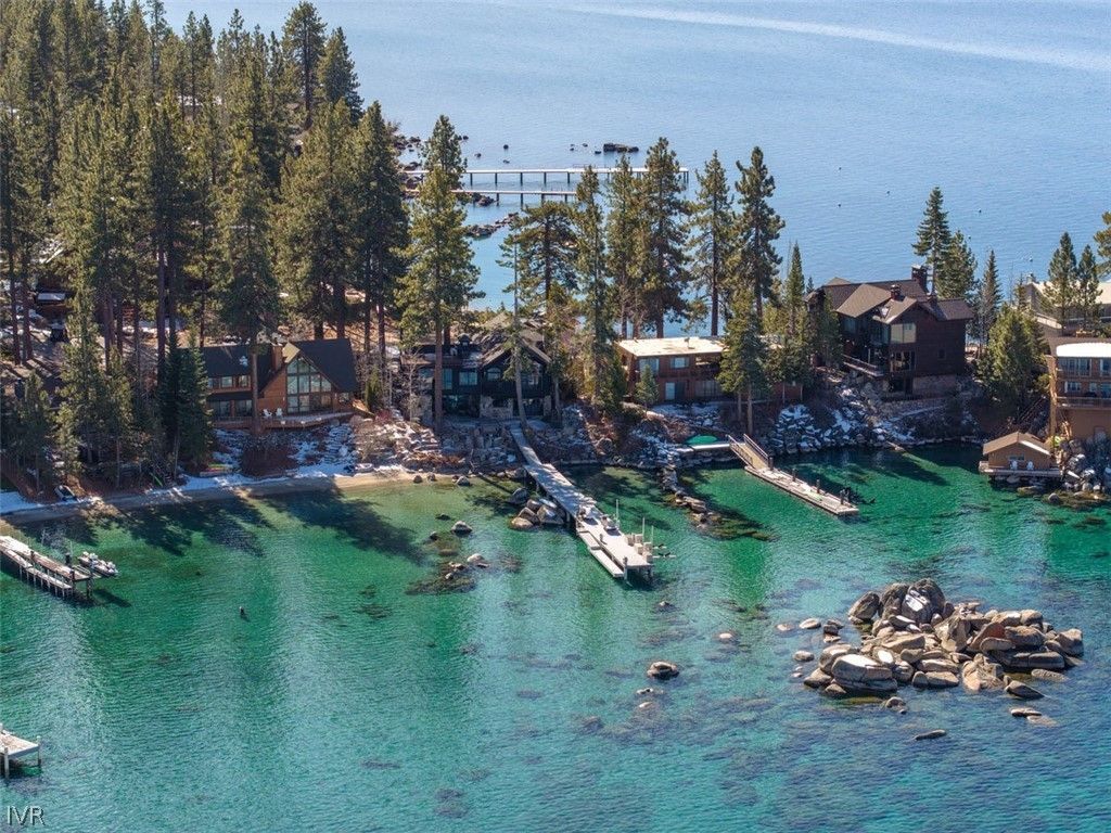 Stunning Lake Tahoe waterfront property offers 80 feet of private white sand beach on the sheltered cove of Skyland in tax-friendly Nevada. Enjoy panoramic lakefront views from every room of this move in ready home with designer interiors & finishes. The recently renovated Chef's kitchen is a dream featuring all new Wolf and SubZero appliances, coffee bar and large walk-in pantry. Spacious main level primary bedroom offers stunning views & direct access to the deck and beach. Elegantly remodeled upper level features 2 en-suite bedrooms, a cozy den with a fireplace and room for overflow guests. The Lake Tahoe views from the loft office might make it difficult to get work done! This property is perfectly setup for indoor/outdoor living featuring a spacious deck, sheltered cove, and two private buoys. Enjoy the day entertaining, swimming, kayaking and boating from your own backyard. Other new upgrades include central HVAC, tankless water heater, and a Generac automatic standby generator.