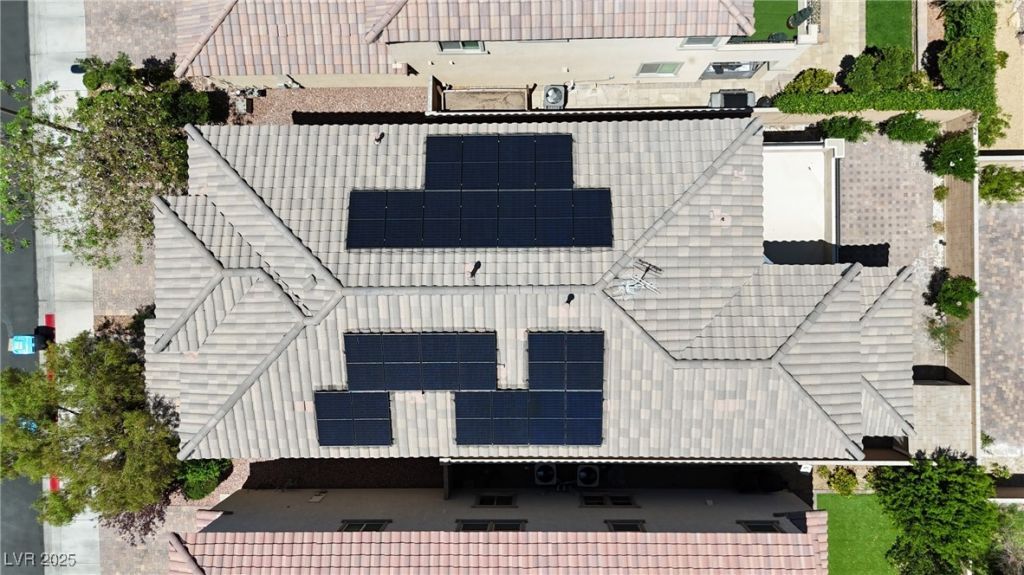 Stunning 5-bedroom, 3.5-bath home located in Skye Canyon No SID. This spacious property offers a perfect blend of comfort, style, and modern convenience. The oversized downstairs primary suite features dual sinks, a separate shower, soaking tub, and a large walk-in closet. The chef's kitchen boasts stainless steel appliances, granite countertops, stylish tile backsplash, a large center island, ideal for entertaining. Separate dining room just off the kitchen. Upstairs, you'll find a massive loft set up as a private theater room, complete with surround sound speakers. One of the upstairs bedrooms includes an en suite bath, walk-in closet, and its own balcony ideal for guests. A large upstairs laundry room adds convenience with cabinetry and a utility sink. The garage includes a 220V outlet, ready for electric vehicle charging. Enjoy access to community amenities including parks, fitness center, swimming pool, and scenic trails.